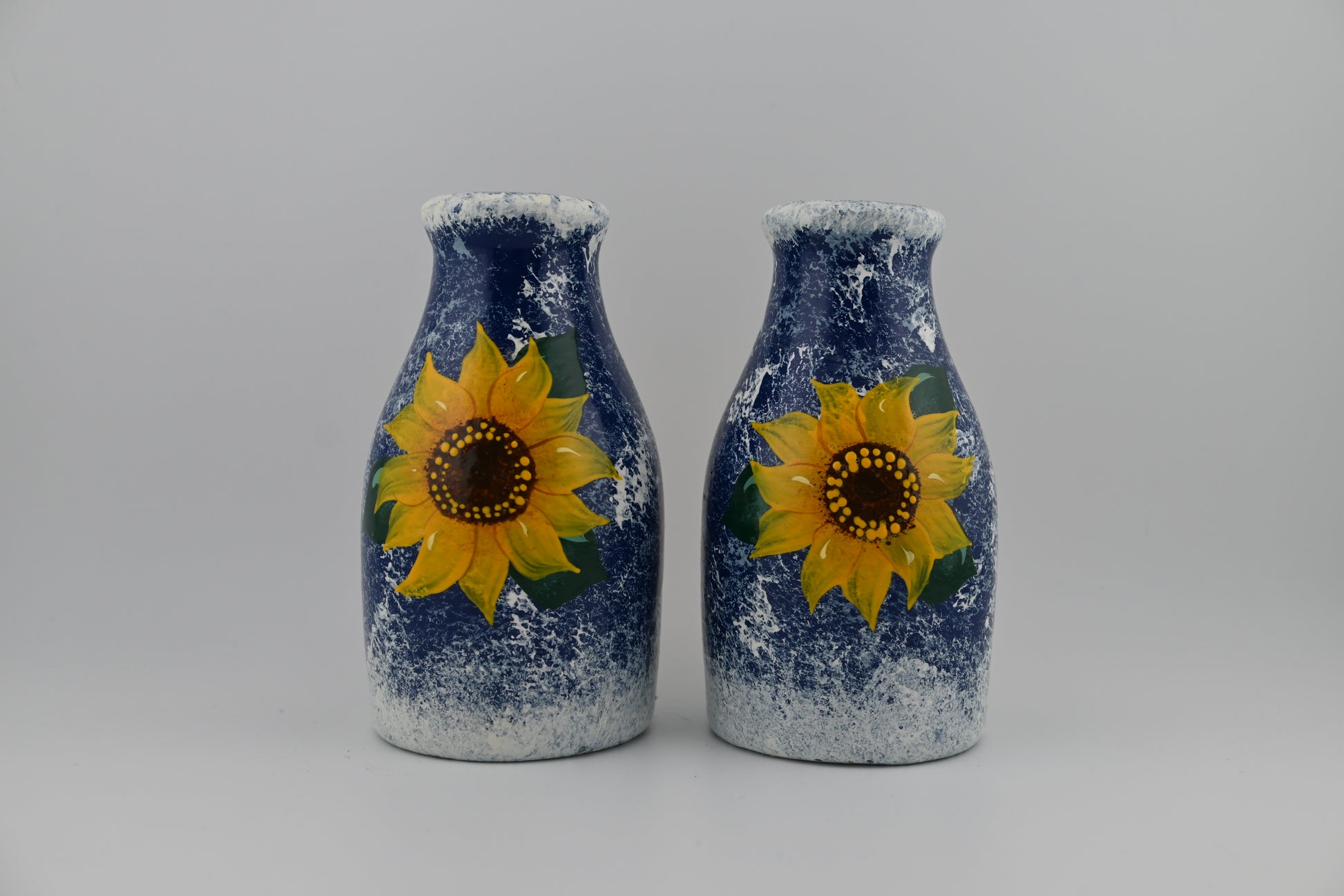 Brighten up your dining table with the Hand-Painted Sunflower Starry Night Salt & Pepper Shaker Set. This unique set combines two classic themes into one charming design: the vibrant beauty of sunflowers and the swirling brilliance of Van Gogh’s "Starry Night." Each shaker is meticulously hand-painted, capturing the bold, cheerful essence of sunflowers set against a mesmerizing night sky. The rich, vivid colors and intricate details make these shakers not just functional, but also a delightful conversation piece. Ideal for adding a touch of artistic flair to your meals, this set is perfect for both everyday use and special occasions. Celebrate art and flavor with this eye-catching, handcrafted duo.