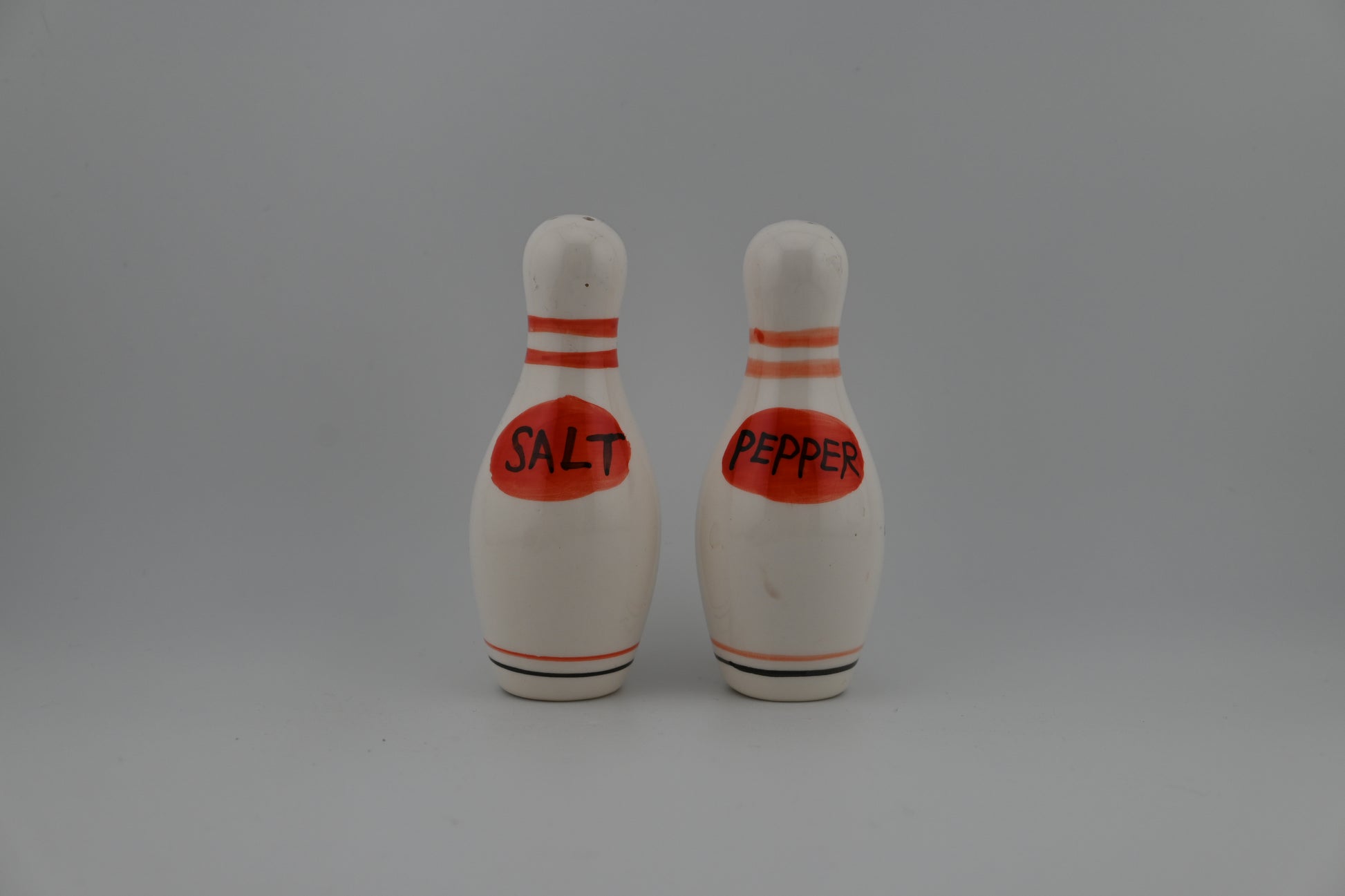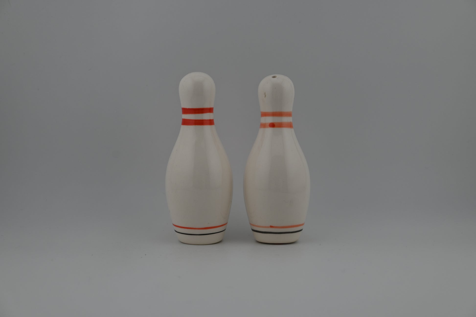 Bring a strike of vintage charm to your dining table with this eye-catching set of salt and pepper shakers, designed to resemble classic bowling pins. Dressed in bold red and white, this unique set is perfect for bowling enthusiasts and adds a playful touch to any kitchen or dining area.
