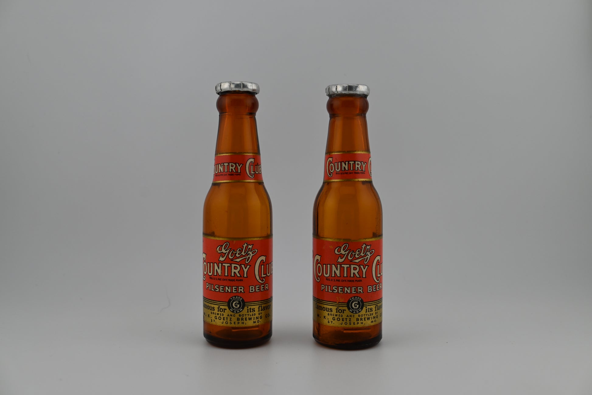 Vintage 1950s Goetz Country Club Pilsner Beer Bottle Salt & Pepper Shakers