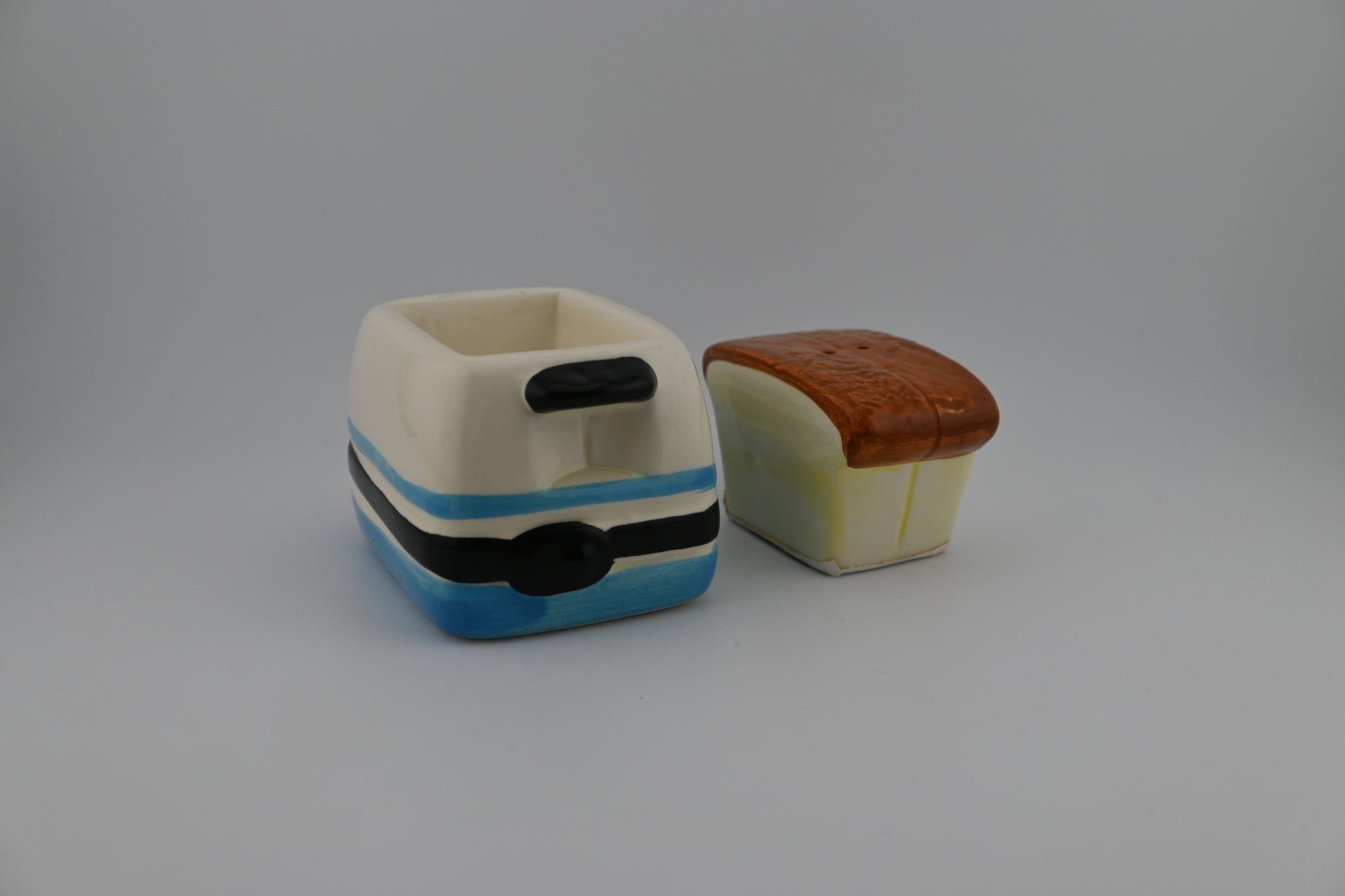 Designed with a playful nod to classic kitchen appliances, this set features shakers shaped like a loaf of bread and a toaster, creating a charming and whimsical touch for your dining table. The stackable design saves space and adds a unique visual element, making it both practical and decorative. Perfect for adding a bit of fun to your mealtime, this set is ideal for everyday use or as a thoughtful gift for cooking enthusiasts and collectors.